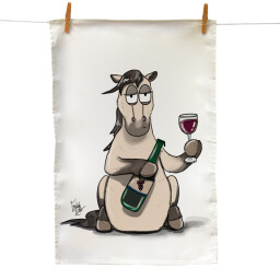 Na obrázku je přísný Sugarplum (společný poník Dun) se zaslouženou sklenkou červeného vína.