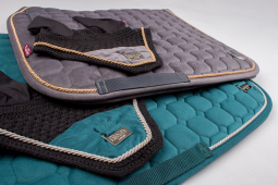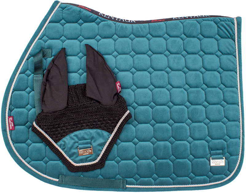 Podsedlová dečka s náušníky v nádherném sametovém vzhledu s nepřehlédnutelným designem prošívání, ozdobným lemem a