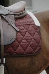 3D síťovaná polyesterová podsedlová podložka s 10mm pěnovou výplní a 200g/m2 polyfill. Samoúchytné popruhy a obvodová smyčka. Podšívka z umělé ovčí kůže.